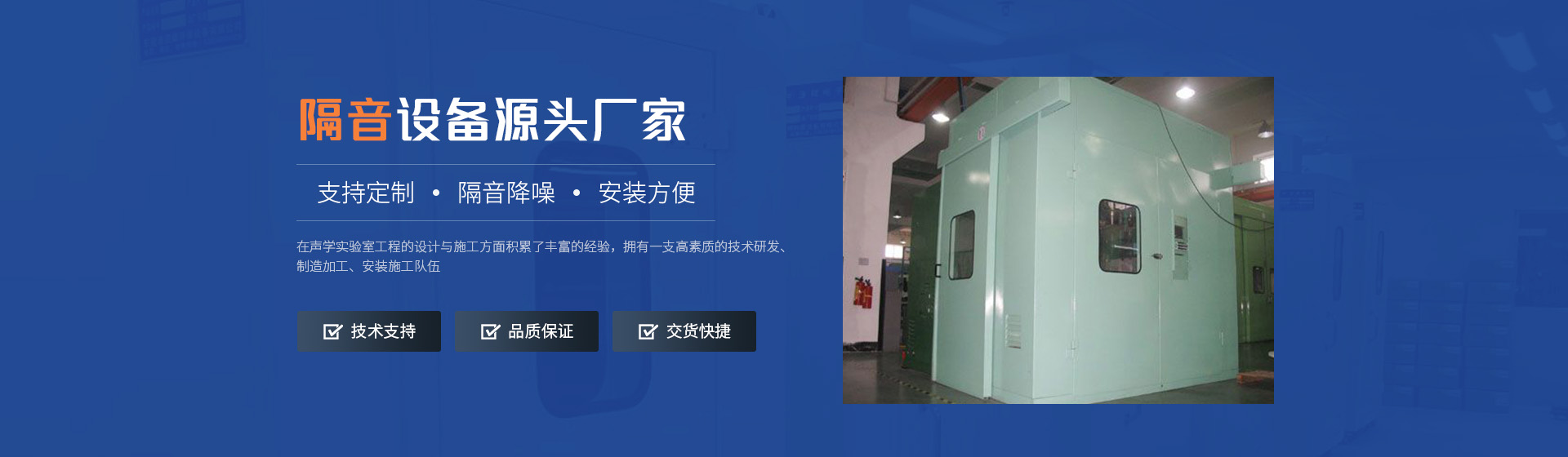 生產銷售銷售各種隔音房,隔音室,靜音室,沖床隔音房,隔音罩,消聲百葉,吸音板,吸聲墻面,空間吸聲體,公路隔音屏障等等